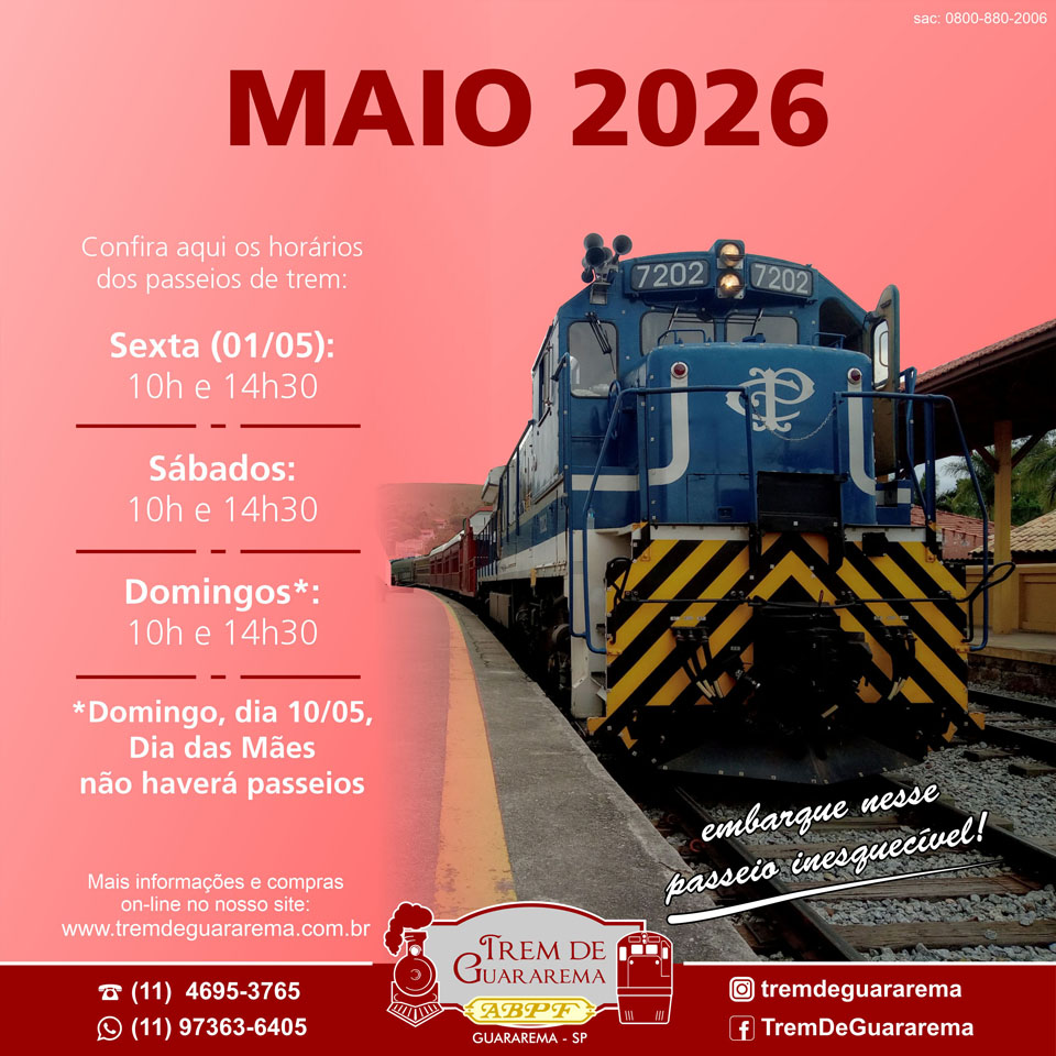 O Trem de Guararema está funcionando! Estamos prontos para recebê-los com toda a segurança e carinho!